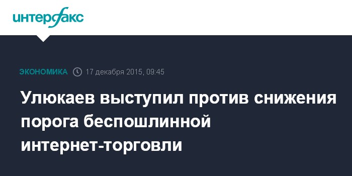 Москва. 17 декабря. INTERFAX.RU – Глава Минэкономразвития Алексей Улюкаев считает, что снижать уровень беспошлинной интернет-торговли ниже 500 евро пока нецелесообразно.