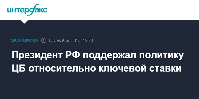 Президент РФ поддержал политику ЦБ относительно ключевой ставки