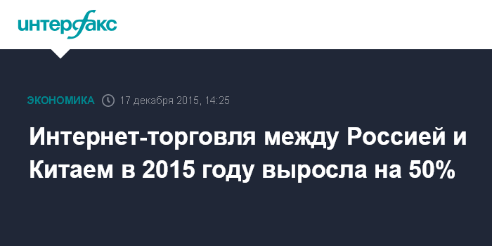 Интернет-торговля между Россией и Китаем в 2015 году выросла на 50%