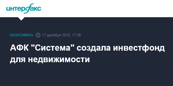 АФК "Система" создала инвестфонд для недвижимости