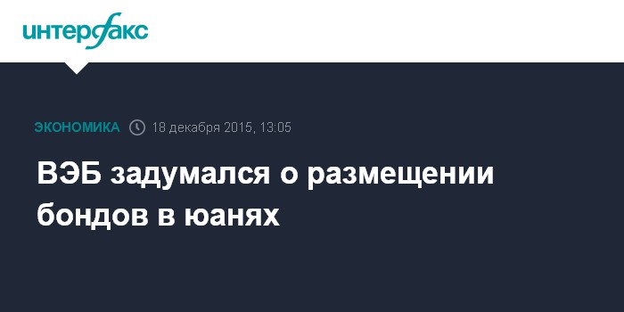 Москва. 18 декабря. INTERFAX.RU – Внешэкономбанк рассматривает возможность размещения бондов в юанях в Китае, а также облигаций в юанях на "Московской бирже", сообщила директор департамента структурного и долгового финансирования ВЭБа Ксения Нефедова на репо-форуме.