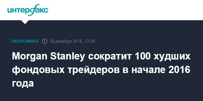 Morgan Stanley сократит 100 худших фондовых трейдеров в начале 2016 года
