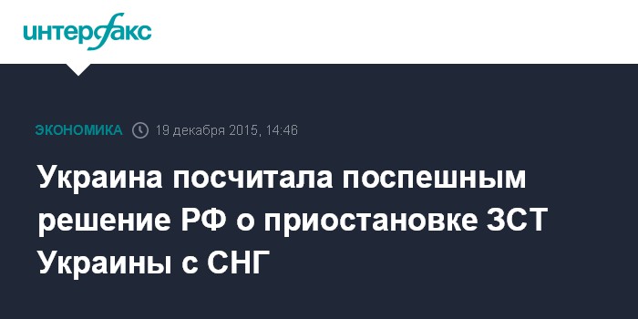Украина посчитала поспешным решение РФ о приостановке ЗСТ Украины с СНГ
