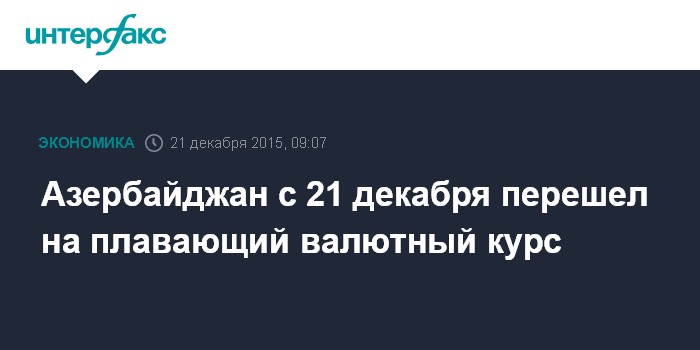 Москва. 21 декабря. INTERFAX.RU – Центральный банк Азербайджана (ЦБА) с 21 декабря 2015 года переходит на плавающий курс национальной валюты - маната, говорится в заявлении Центробанка.