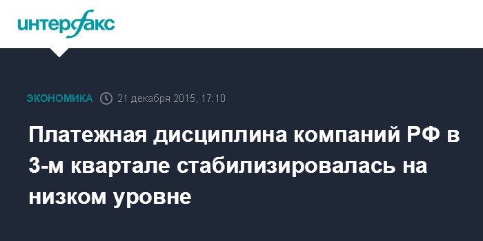 Платежная дисциплина компаний РФ в 3-м квартале стабилизировалась на низком уровне