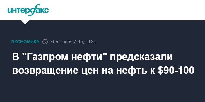 Москва. 21 декабря. INTERFAX.RU - Текущая низкая цена на нефть обусловлена в том числе игрой на понижение в ожидании увеличения ставок ФРС США, поэтому она не будет долгосрочной, считает глава "Газпром нефти" Александр Дюков.