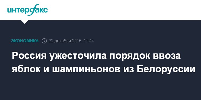 Москва. 22 декабря. INTERFAX.RU – Россия со среды ужесточает порядок ввоза яблок и шампиньонов из Белоруссии.