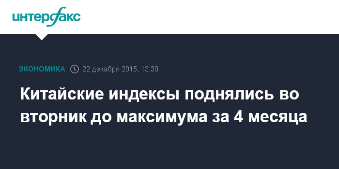 Китайские индексы поднялись во вторник до максимума за 4 месяца