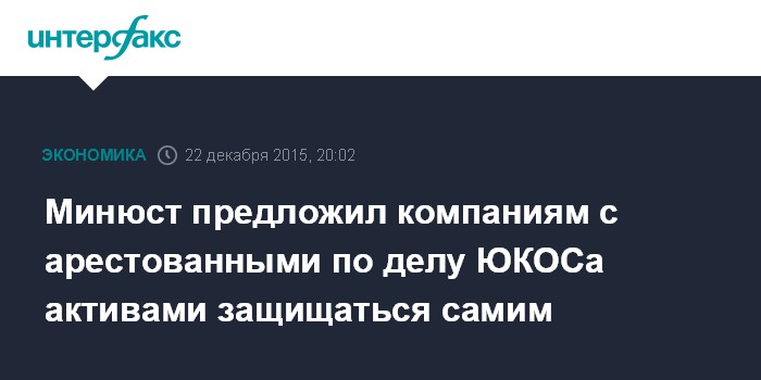 Минюст предложил компаниям с арестованными по делу ЮКОСа активами защищаться самим