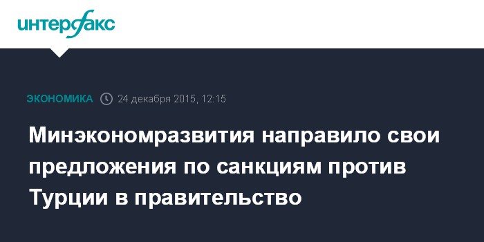 Минэкономразвития направило свои предложения по санкциям против Турции в правительство