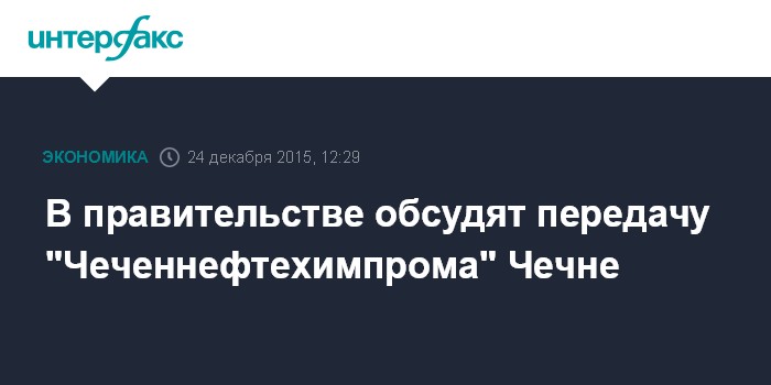 Москва. 24 декабря. INTERFAX.RU - Пресс-секретарь президента РФ Дмитрий Песков сообщил, что вопрос передачи Чеченской республике предприятия "Чеченнефтехимпром" будет прорабатываться на уровне кабинета министров.