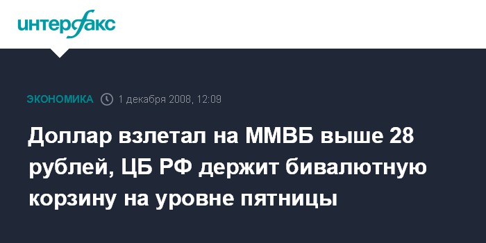 Доллар взлетал на ММВБ выше 28 рублей, ЦБ РФ держит бивалютную корзину на уровне пятницы