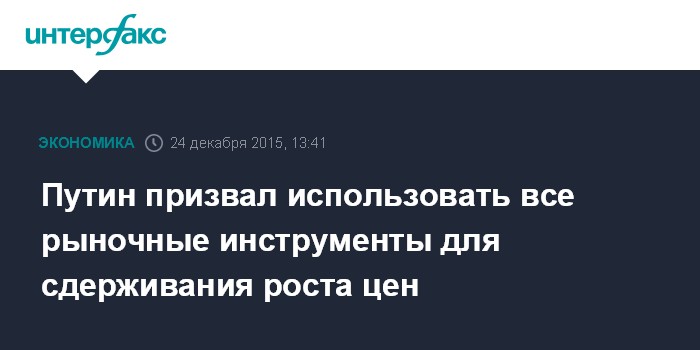 Москва. 24 декабря. INTERFAX.RU – Президент России Владимир Путин заявил о необходимости использовать все возможные рыночные механизмы для сдерживания роста цен в стране.