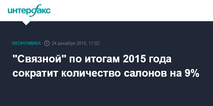Москва. 24 декабря. INTERFAX.RU – Количество салонов ритейлера "Связной" по итогам 2015 года снизится на 9%, до 2,82 тыс. магазинов, сообщил "Интерфаксу" представитель компании.
