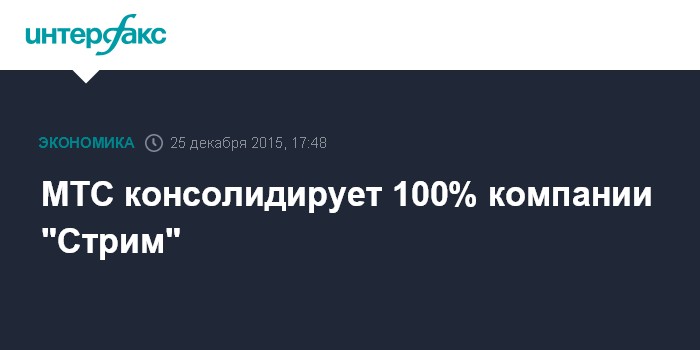 МТС консолидирует 100% компании "Стрим"