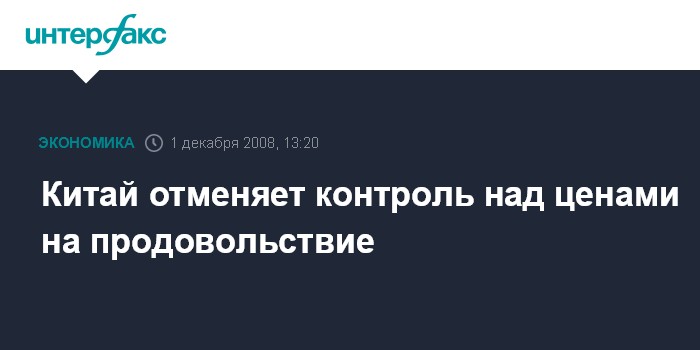 Москва. 1 декабря. INTERFAX.RU - Госкомитет по развитию и реформам КНР в понедельник объявил о решении приостановить действие постановления о временных мерах контроля над ценами на зерно и ряд продуктов питания, принятых ранее в этом году для снижения роста инфляции, сообщили китайские СМИ.
