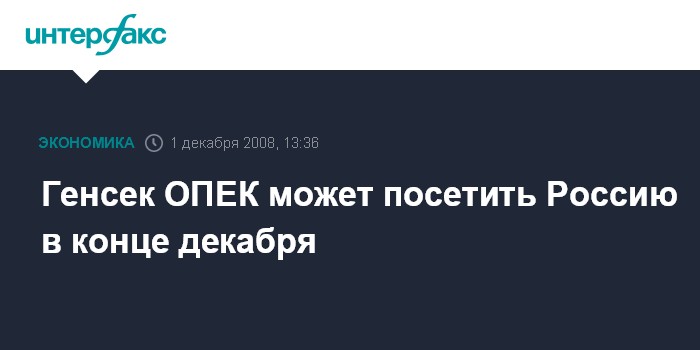 Москва. 1 декабря. INTERFAX.RU - Генеральный секретарь ОПЕК Абдалла Эль-Бадри может посетить Россию после следующего заседания ОПЕК, назначенного на 17 декабря, сообщило агентство Bloomberg. Россия обещала присоединиться к организации в вопросах ограничения поставок нефти после существенного падения ее стоимости, заявил он журналистам в Тегеране в понедельник.
