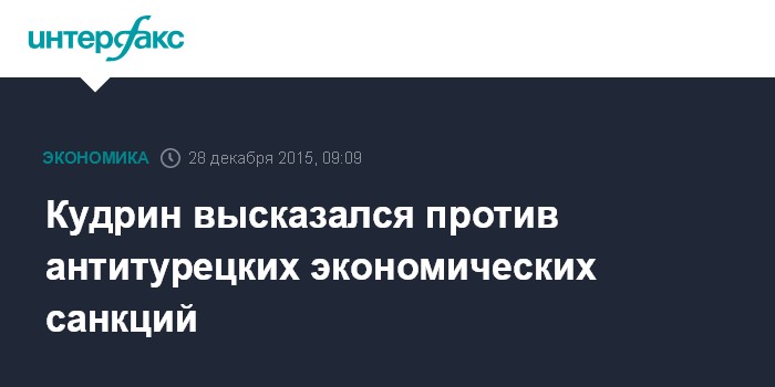Москва. 28 декабря. INTERFAX.RU - Экс-министр финансов, глава Комитета гражданских инициатив Алексей Кудрин отрицательно относится к санкциям, которые были введены в России против Турции.