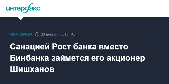 Санацией Рост банка вместо Бинбанка займется его акционер Шишханов