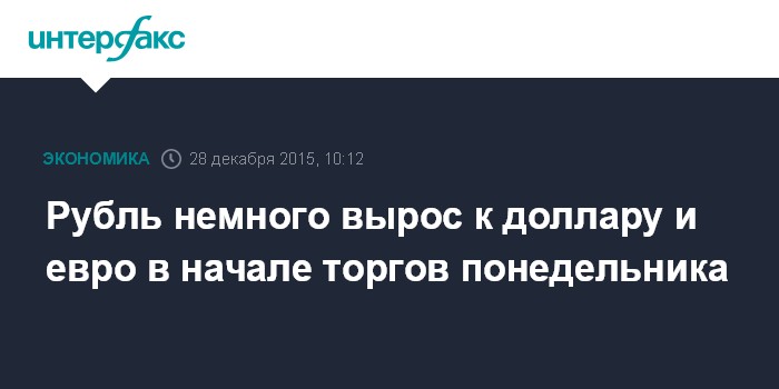 Москва. 28 декабря. INTERFAX.RU – Рубль немного вырос к доллару и евро на Московской бирже при открытии торгов в понедельник, продолжая консолидироваться в условиях пониженной активности внешних рынков.