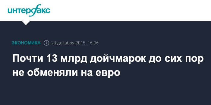 Москва. 28 декабря. INTERFAX.RU – Граждане Германии и других стран все еще хранят примерно 12,9 млрд немецких марок, хотя с момента полного перехода на евро прошло почти 14 лет, передает Deutsche Welle.