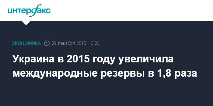 Украина в 2015 году увеличила международные резервы в 1,8 раза