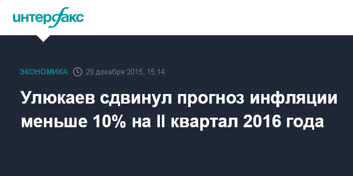 Москва. 29 декабря. INTERFAX.RU - Экономика РФ выйдет на однозначный уровень инфляции не в I, а во II квартале 2016 года, заявил министр экономического развития РФ Алексей Улюкаев.