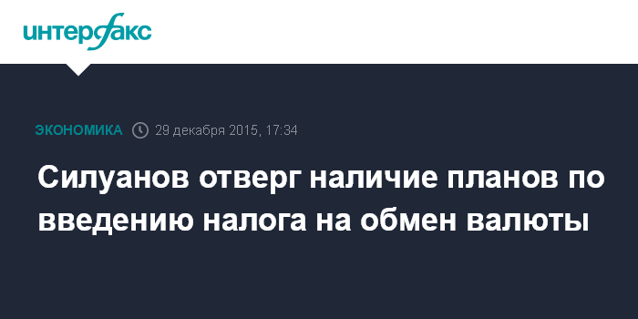 Москва. 29 декабря. INTERFAX.RU – Власти не планируют вводить новые налоги на валютообменные операции, заявил министр финансов Антон Силуанов в эфире телеканала "Россия 24".