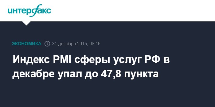 Индекс PMI сферы услуг России в декабре 2015 года составил 47,8 пункта против 49,8 пункта в ноябре. Декабрьское значение индекса PMI сферы услуг России, как и в октябре, стало минимальным с марта текущего года.