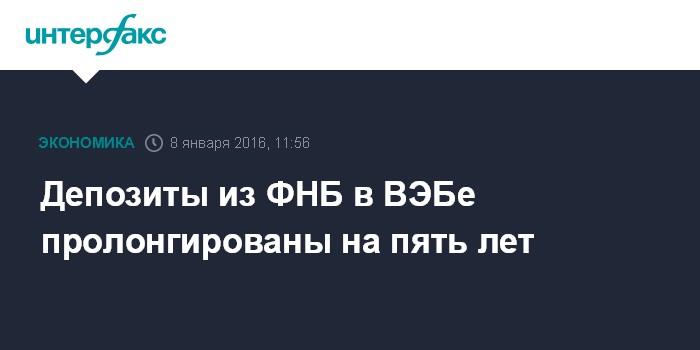Депозиты из ФНБ в ВЭБе пролонгированы на пять лет