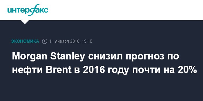Москва. 11 января. INTERFAX.RU - Morgan Stanley пересмотрел прогноз стоимости нефти в 2016-2017 годах в сторону понижения, сообщается в обзоре инвестбанка.