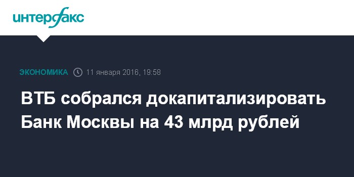 ВТБ собрался докапитализировать Банк Москвы на 43 млрд рублей