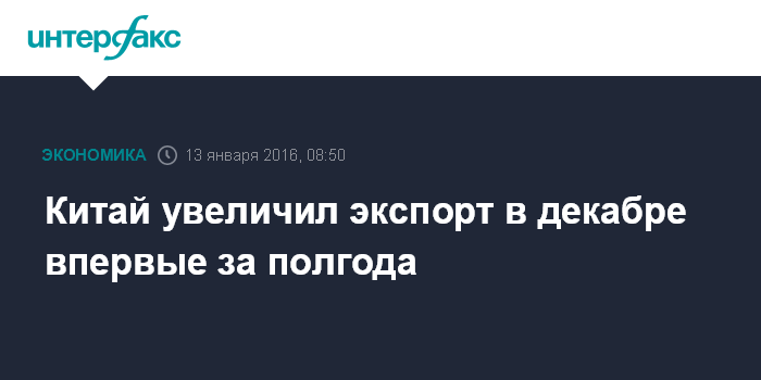 Москва. 13 января. INTERFAX.RU - Объем китайского экспорта в декабре увеличился впервые за шесть месяцев, сообщает Главное таможенное управление КНР.