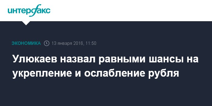 Москва. 13 января. INTERFAX.RU – Глава Минэкономразвития Алексей Улюкаев считает, что шансы как на укрепление, так и на ослабление рубля в текущей волатильной ситуации одинаковые.