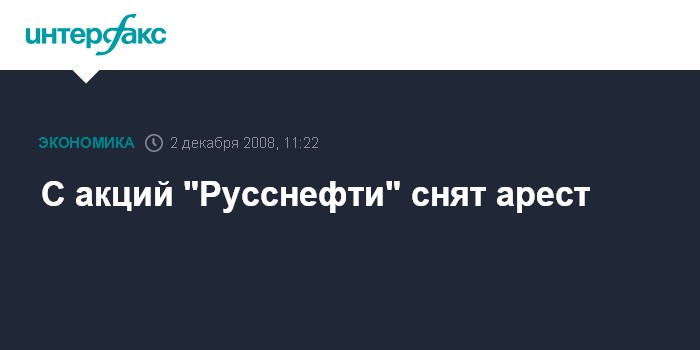 Москва. 2 декабря. INTERFAX.RU - Следственные органы сняли арест с акций НК "Русснефть" (РТС: RUSN), сообщила "Интерфаксу" официальный представитель Следственного комитета (СК) при МВД России Ирина Дудукина.