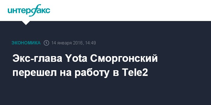 Экс-глава Yota Сморгонский перешел на работу в Tele2