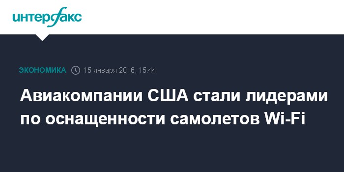 Москва. 15 января. INTERFAX.RU – Американские авиакомпании возглавили рейтинг оснащенности самолетов услугой беспроводного доступа в интернет, сообщает агентство Bloomberg со ссылкой на исследование аналитиков Routehappy.