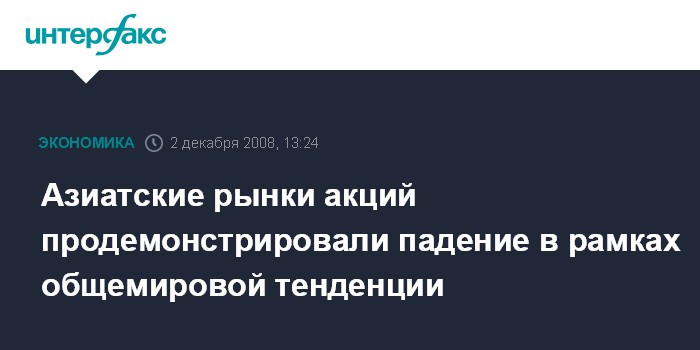 Азиатские рынки акций продемонстрировали падение в рамках общемировой тенденции