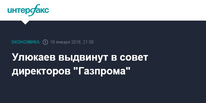 Ранее в понедельник РБК со ссылкой на источник в правительстве сообщило, что государство собирается выдвинуть Улюкаева в совет директоров "Газпрома" вместо профессора Санкт-Петербургского государственного университета Валерия Мусина, который скончался в декабре прошлого года.