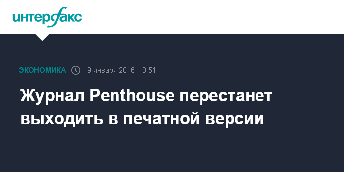 Москва. 19 января. INTERFAX.RU – Американская компания FriendFinder Networks прекратит издание журнала Penthouse в печатной версии после 50 лет его существования. В дальнейшем материалы Penthouse будут предлагаться только в цифровом формате, говорится в сообщении компании.