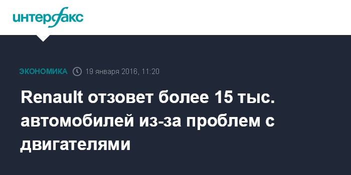 "Renault обязался отозвать 15 тыс. автомобилей для доработки двигателей", - сказала она.