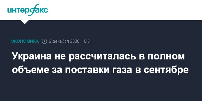 Москва. 2 декабря. INTERFAX.RU - "Нафтогаз Украины" на данный момент не рассчитался полностью за поставки газа в сентябре и просит дополнительной отсрочки платежей.