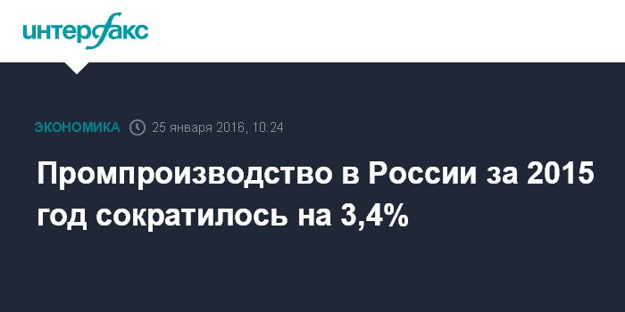 Промпроизводство в России за 2015 год сократилось на 3,4%