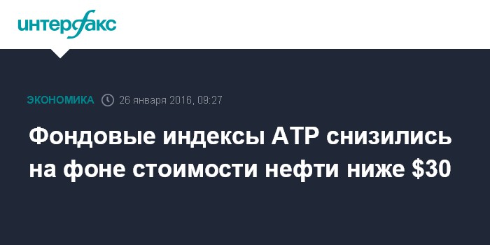 Фондовые индексы АТР снизились на фоне стоимости нефти ниже $30