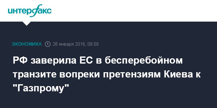 РФ заверила ЕС в бесперебойном транзите вопреки претензиям Киева к "Газпрому"