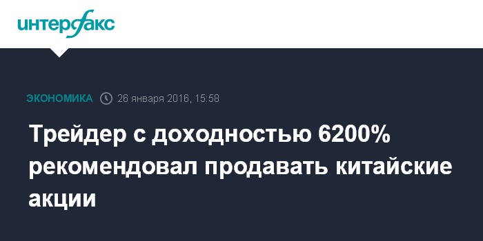 Трейдер с доходностью 6200% рекомендовал продавать китайские акции