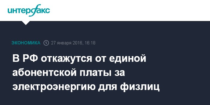 В РФ откажутся от единой абонентской платы за электроэнергию для физлиц