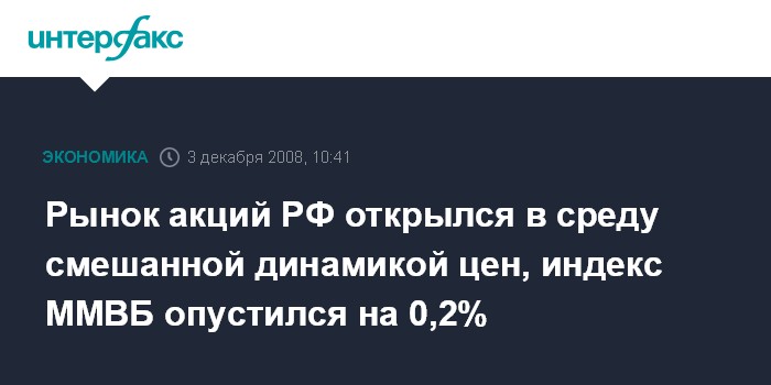 Рынок акций РФ открылся в среду смешанной динамикой цен, индекс ММВБ опустился на 0,2%