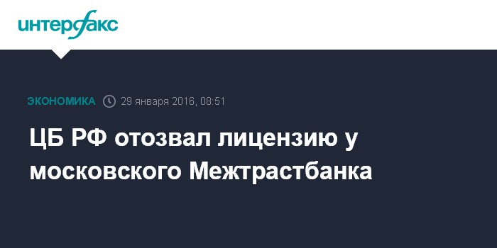 ЦБ РФ отозвал лицензию у московского Межтрастбанка