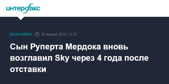 Москва. 29 января. INTERFAX.RU – Джеймс Мердок, младший сын медиамагната Руперта Мердока, вновь станет председателем совета директоров британской медиакорпорации Sky, говорится в сообщении компании.